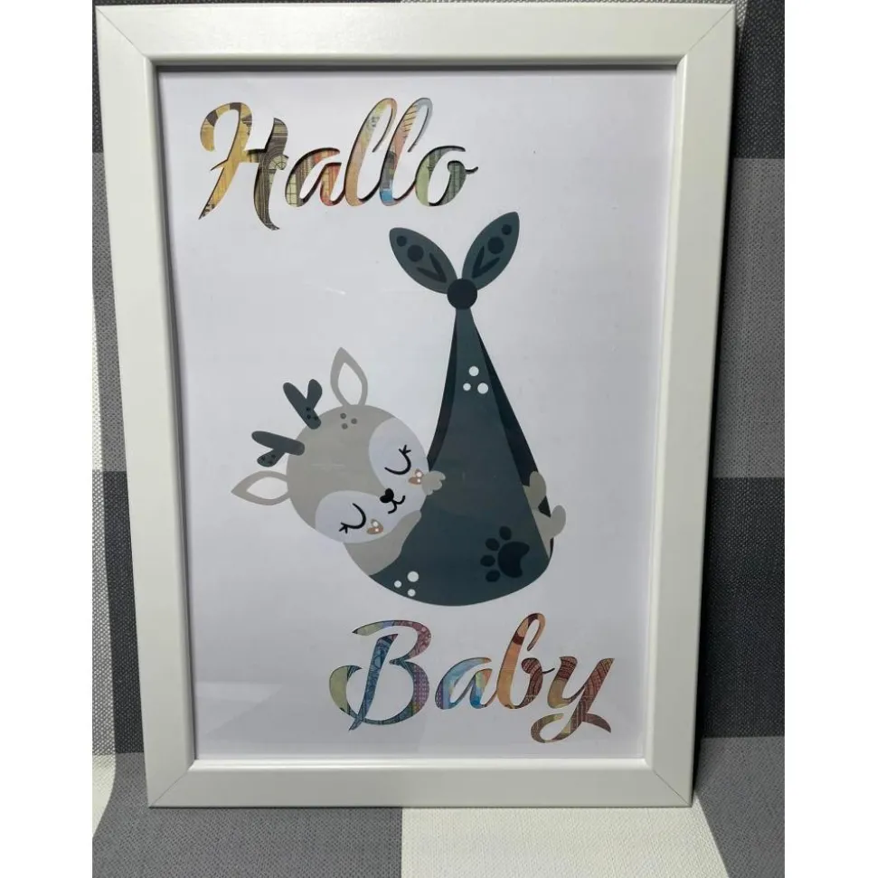 Geldgeschenk Bilderrahmen Geburt Hirsch personalisierbar DIN A4