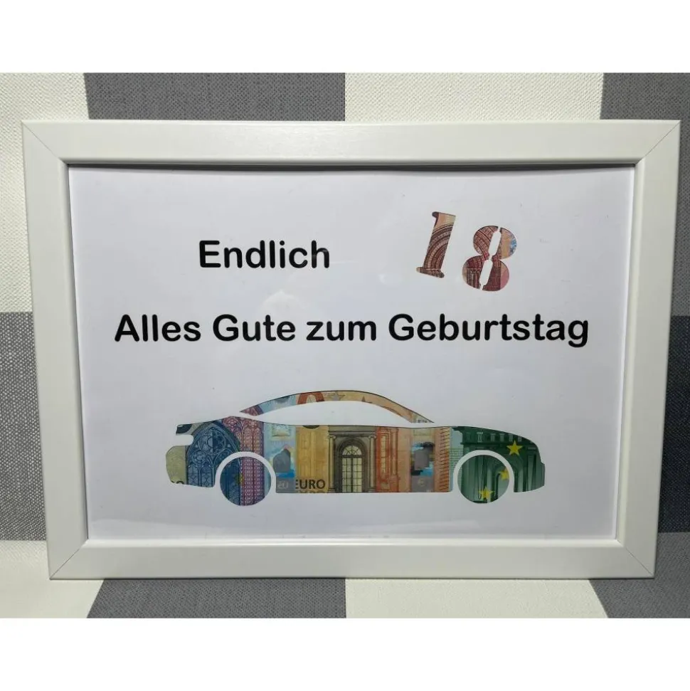 Geldgeschenk Bilderrahmen Geburtstag 18 Auto personalisierbar DIN A4