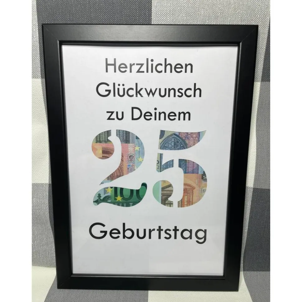 Geldgeschenk Bilderrahmen Geburtstag 25 personalisierbar DIN A4