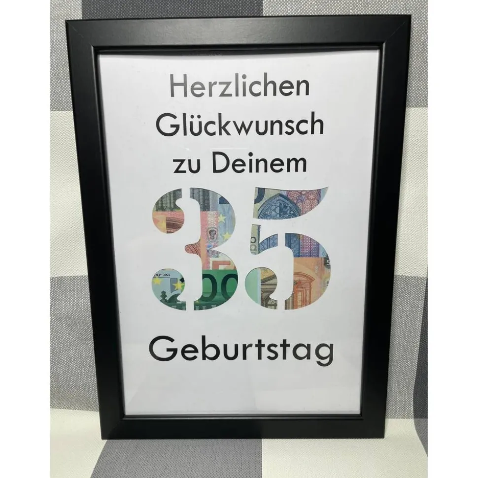 Geldgeschenk Bilderrahmen Geburtstag 35 personalisierbar DIN A4