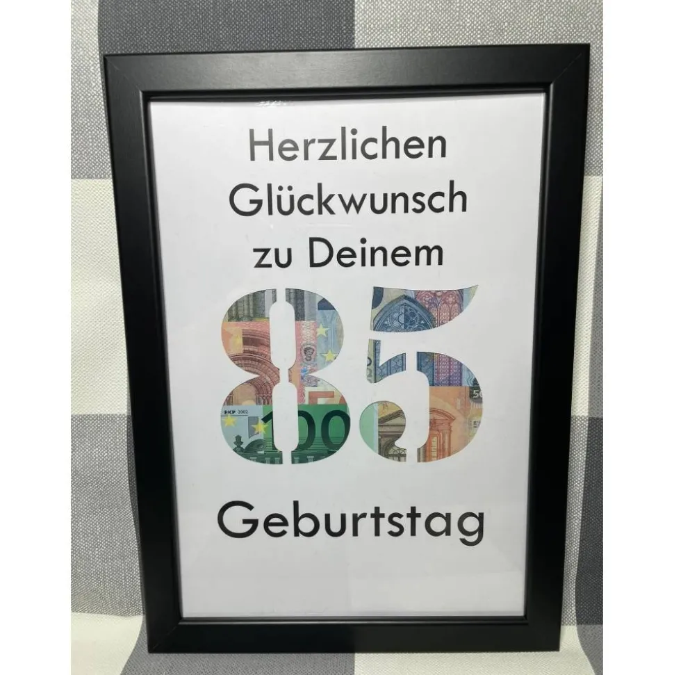 Geldgeschenk Bilderrahmen Geburtstag 85 personalisierbar DIN A4
