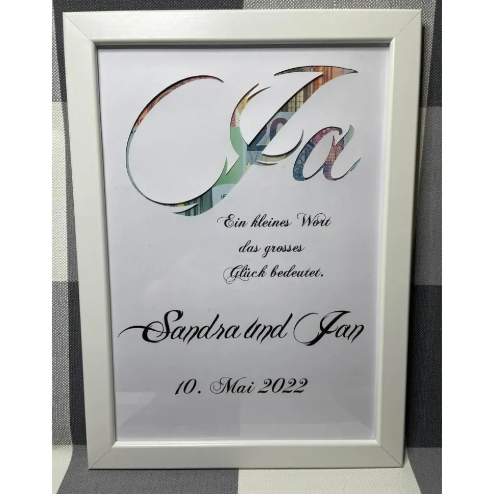 Geldgeschenk Bilderrahmen Hochzeit Ja personalisierbar DIN A4