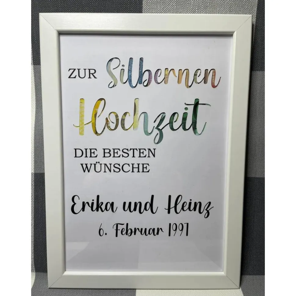 Geldgeschenk Bilderrahmen Silberne Hochzeit personalisierbar DIN A4
