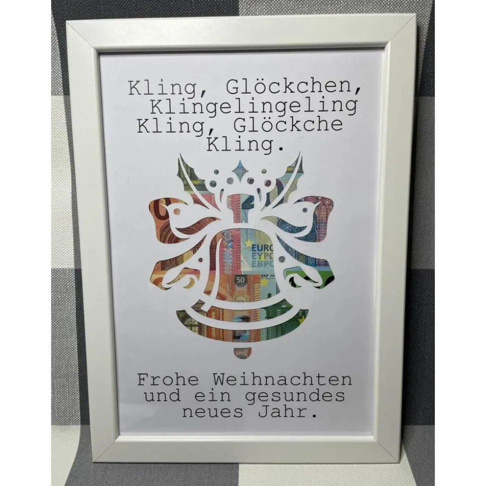 Geldgeschenk Bilderrahmen Weihnachten Glocke personalisierbar DIN A4