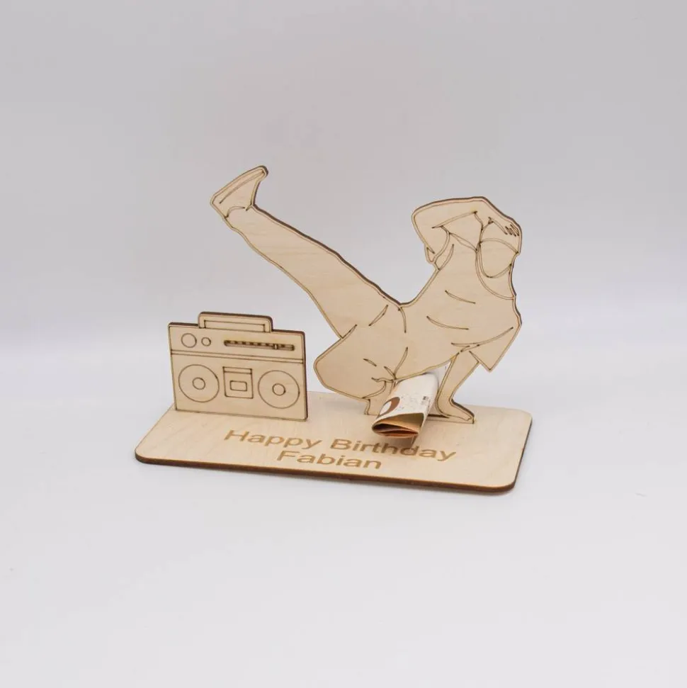 Geldgeschenk Breakdance – aus Holz personalisiert