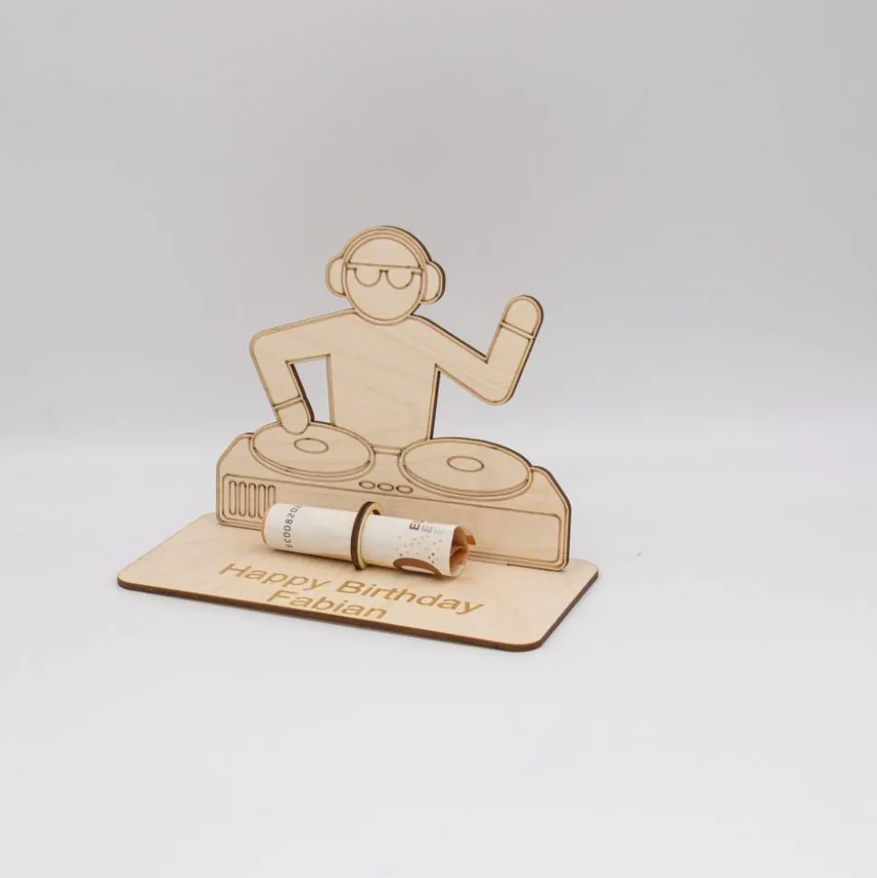 Geldgeschenk DJ – aus Holz personalisiert