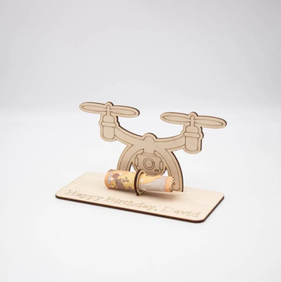 Unser Geldgeschenk aus 3 mm Birkensperrholz bietet nicht nur eine stilvolle Präsentation für Geldscheine, sondern kann auch als dekoratives Element in jedem Zuhause dienen. Es kann an der Wand aufgehängt oder auf einem Regal platziert werden, um eine wunderbare Erinnerung an den besonderen Anlass zu schaffen.