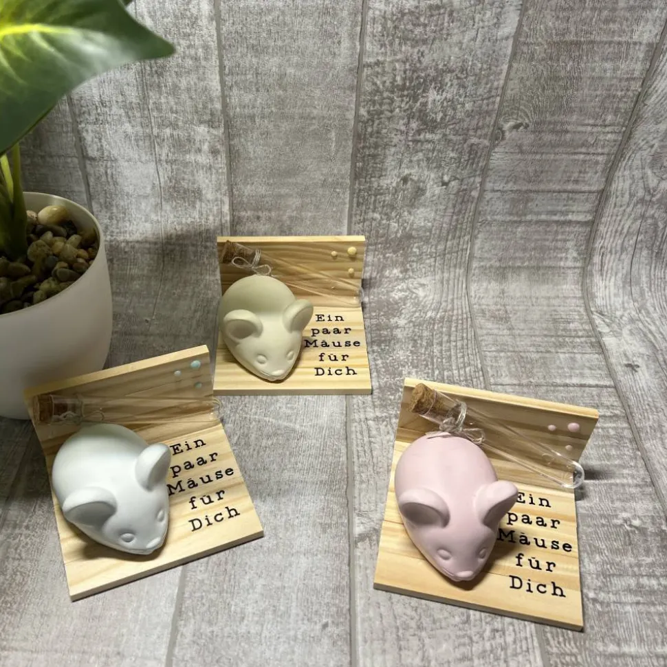 Die Maus ist aus Raysin gegossen worden. Passend dazu, ist der Spruch „Ein paar Mäuse für Dich“ aufgebracht. In dem Reagenzglas, kannst das Geld verpackt und verschenkt werden.