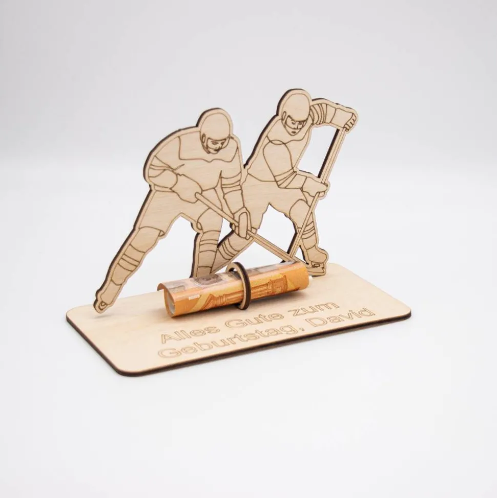 Geldgeschenk Eishockey – aus Holz personalisiert