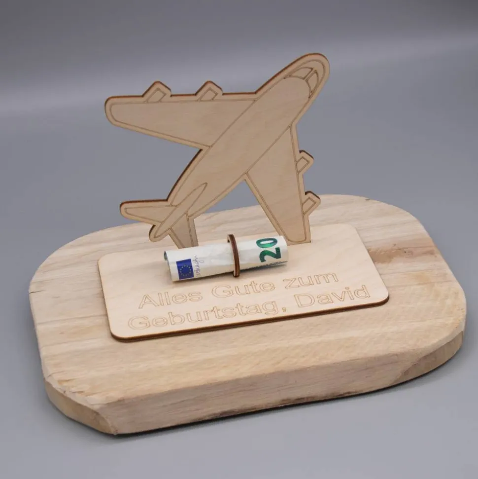 Unser Geldgeschenk aus 3 mm Birkensperrholz bietet nicht nur eine stilvolle Präsentation für Geldscheine, sondern kann auch als dekoratives Element in jedem Zuhause dienen. Es kann an der Wand aufgehängt oder auf einem Regal platziert werden, um eine wunderbare Erinnerung an den besonderen Anlass zu schaffen.