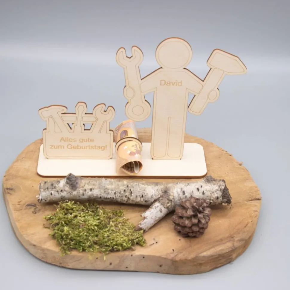 Geldgeschenk für Handwerker 1 – aus Holz personalisiert