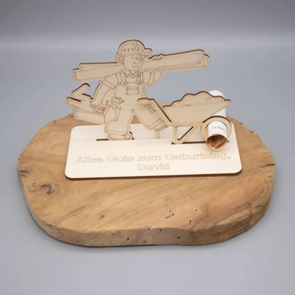 Geldgeschenk für Handwerker 2 – aus Holz personalisiert