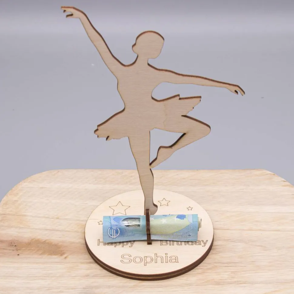 Geldgeschenk für Mädchen – Ballerina – aus Holz personalisiert