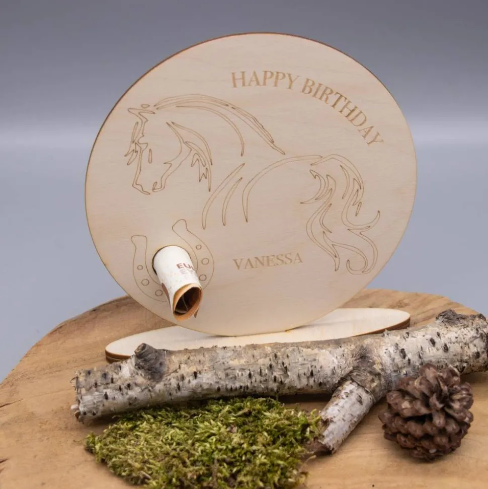 Überraschen Sie Ihre Liebsten mit einem einzigartigen Geldgeschenk aus hochwertigem Birkensperrholz, das mit einer beeindruckenden Lasergravur versehen ist. Besuchen Sie unseren Etsy-Shop, um das perfekte Geschenk für jeden besonderen Anlass zu finden. Bringen Sie Ihre Glückwünsche auf stilvolle und persönliche Weise zum Ausdruck und schaffen Sie unvergessliche Erinnerungen.