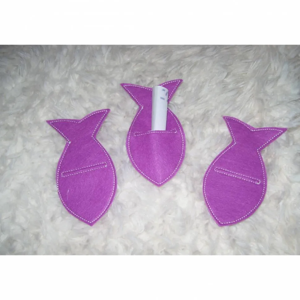 Er ist aus Filz gefertigt und ca. 5×10 cm groß.
