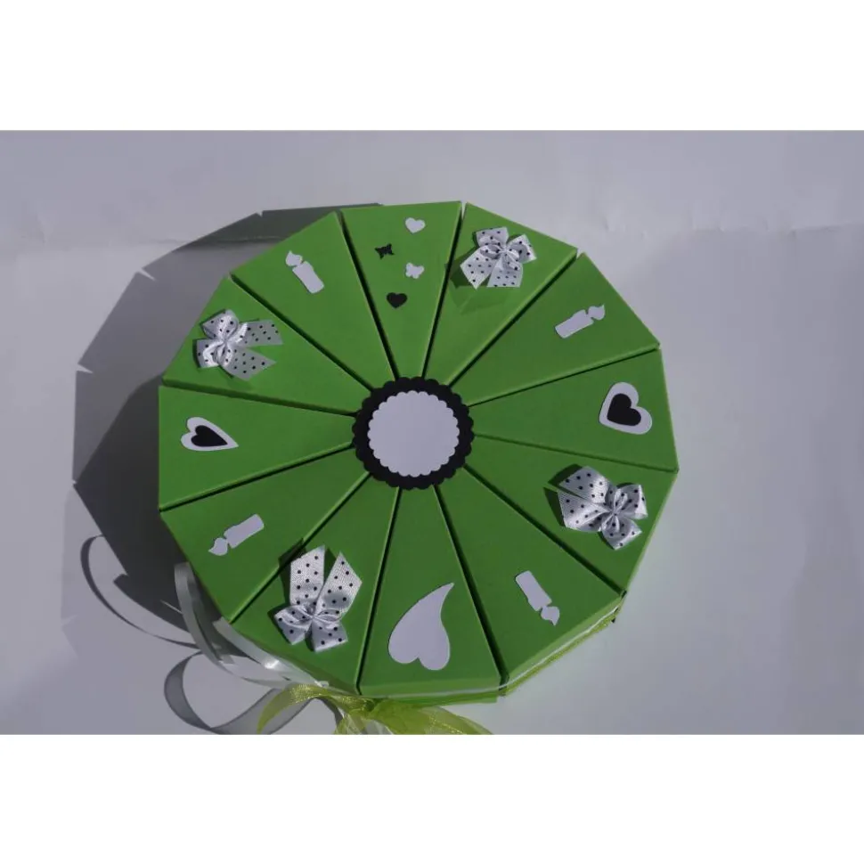 Sie ist mit einer Schleife zusammengebunden, einfach aufmachen und dann können die einzelnen Schachteln geöffnet werden.