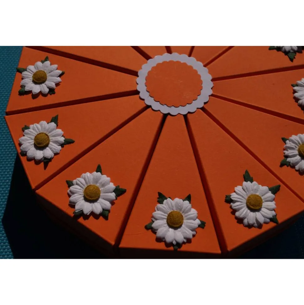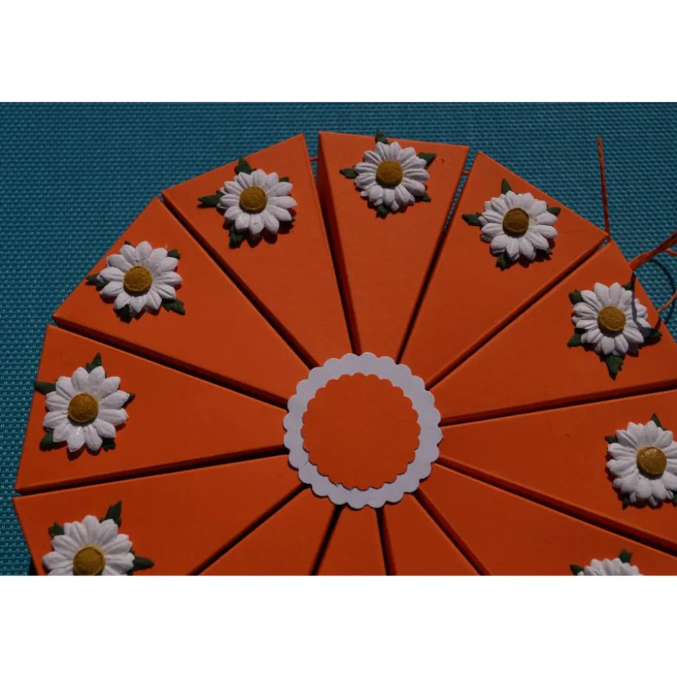 Der Durchmesser ist ca. 21cm, die Stücke sind unten zu öffnen und ca .5x5cm, dann laufen sie spitz zu und sind dann natürlich kleiner.