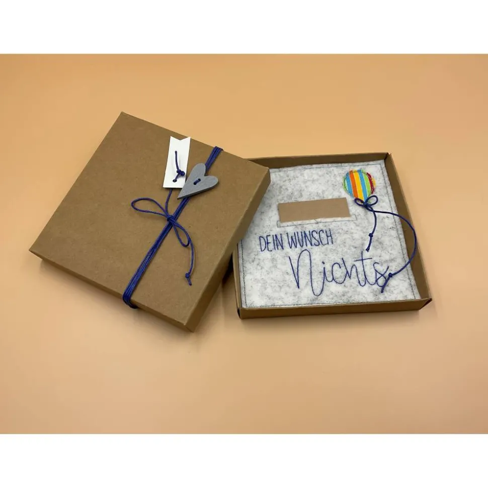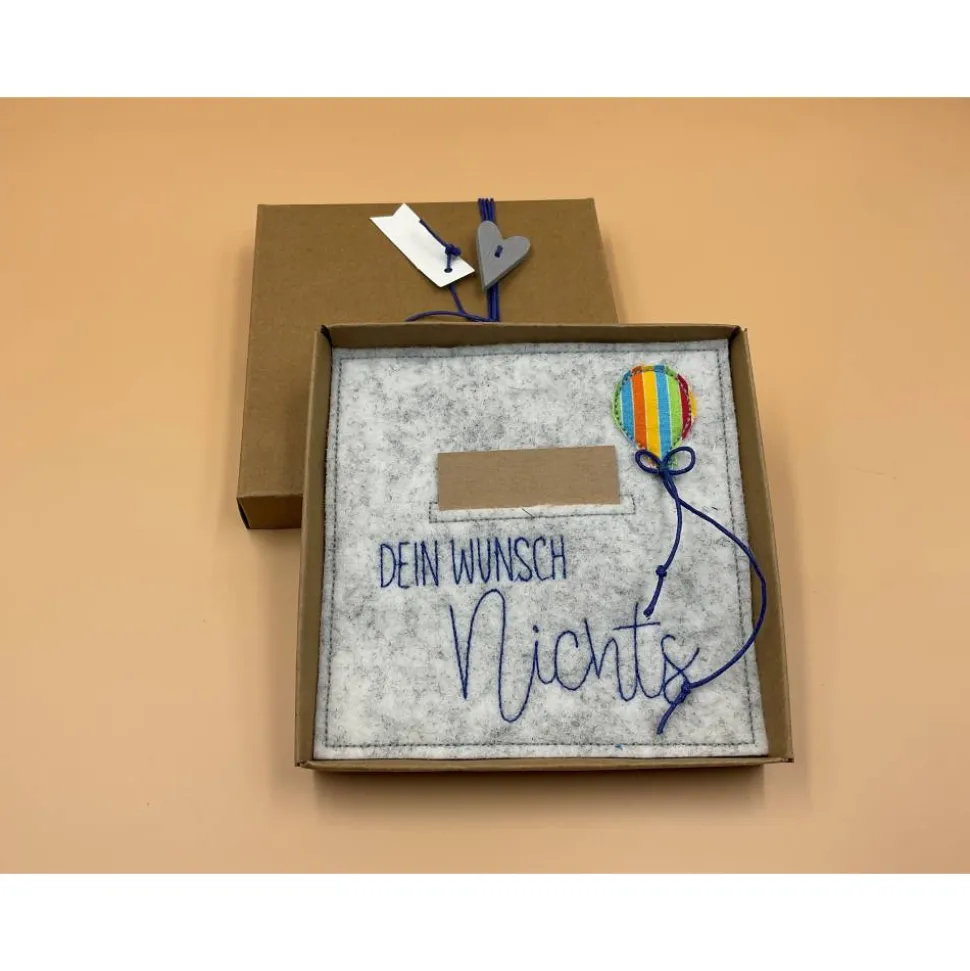 Die bestickte Filzkarte mit Einschub für Geld oder eine Botschaft, oder Beides! eignet sich besonders für Menschen die keinen speziellen Wunsch geäußert haben,
