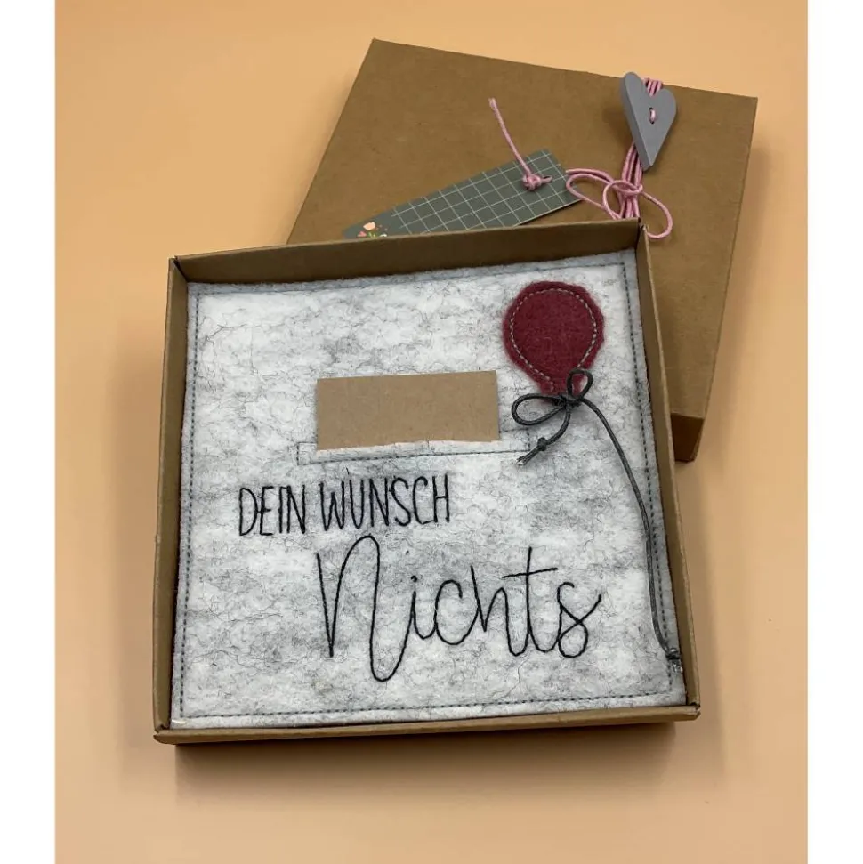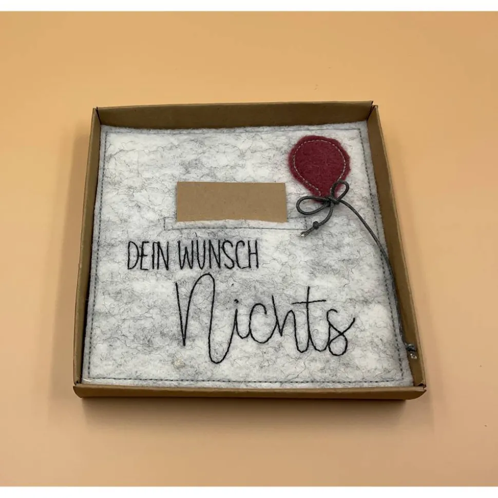 Die bestickte Filzkarte mit Einschub für Geld oder eine Botschaft, oder Beides! eignet sich besonders für Menschen die keinen speziellen Wunsch geäußert haben,