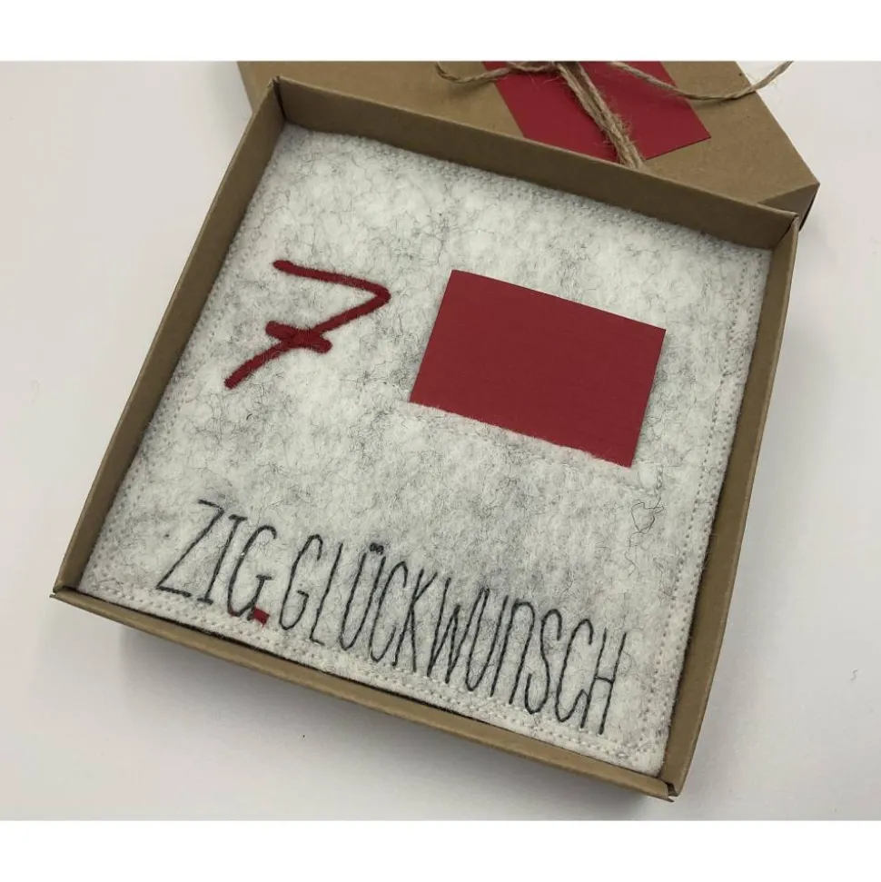 Im Inneren eine bestickte Filzkarte mit seitlichem Einschub für Geld oder eine Botschaft, oder Beides!