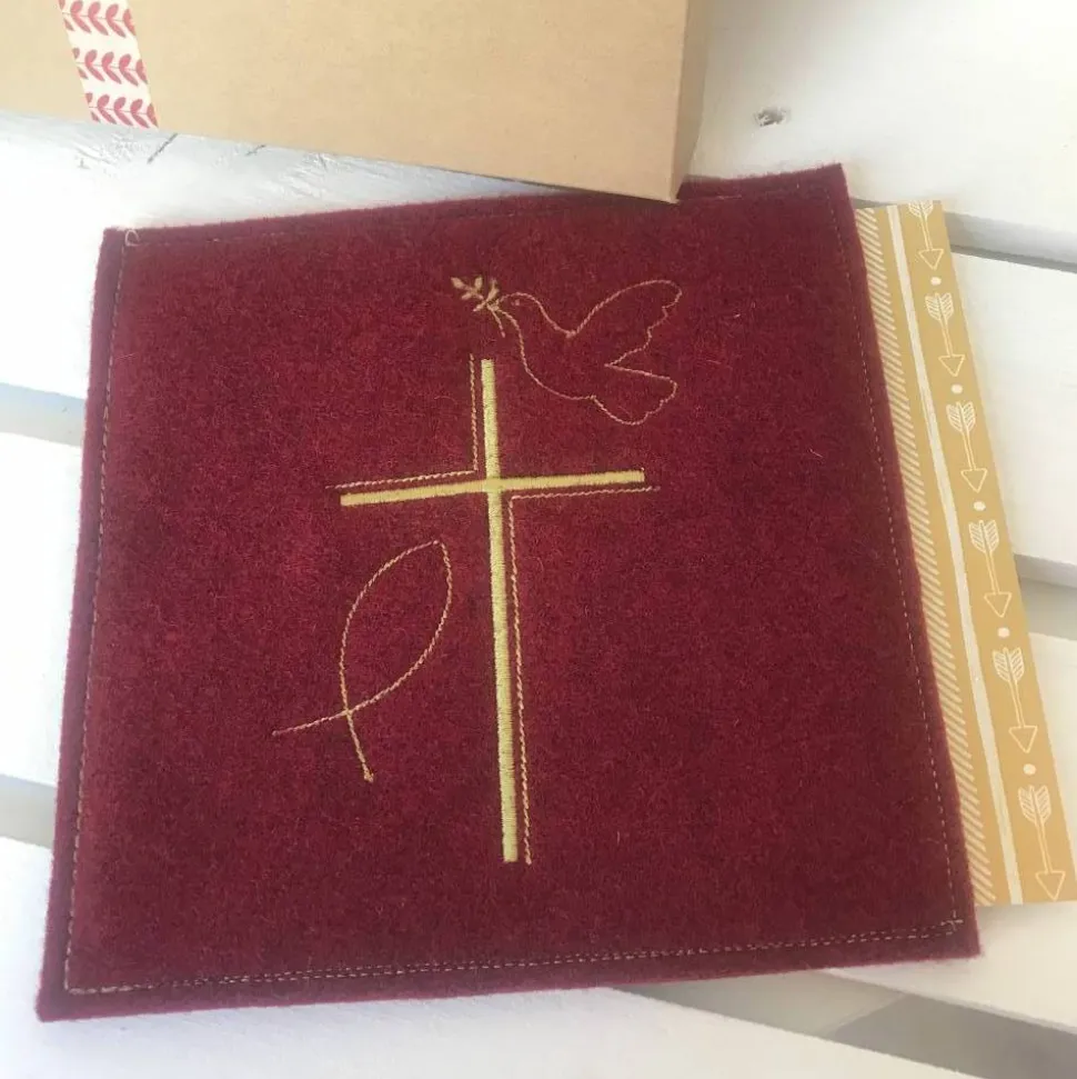 Das Motiv wird direkt auf das Filz aus 100% Wolle gestickt.