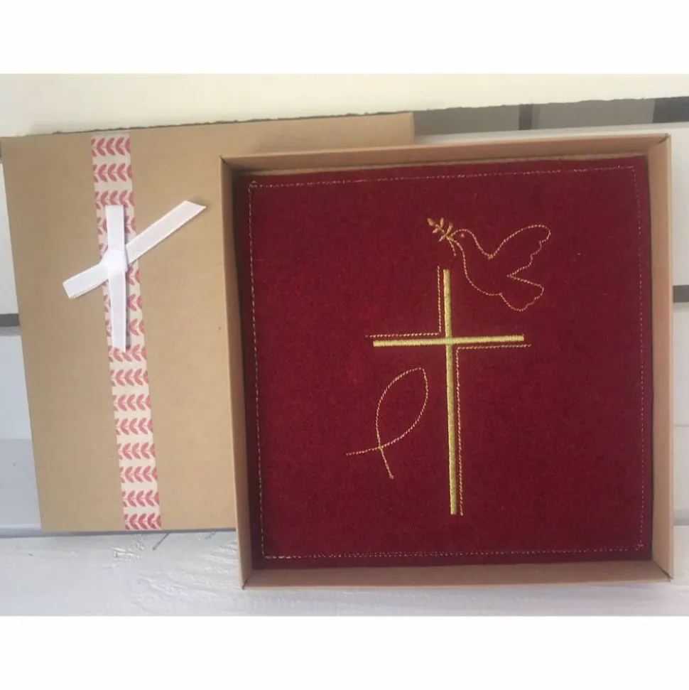 Im Inneren eine bestickte Filzkarte mit seitlichem Einschub für Geld oder eine Botschaft, oder Beides!