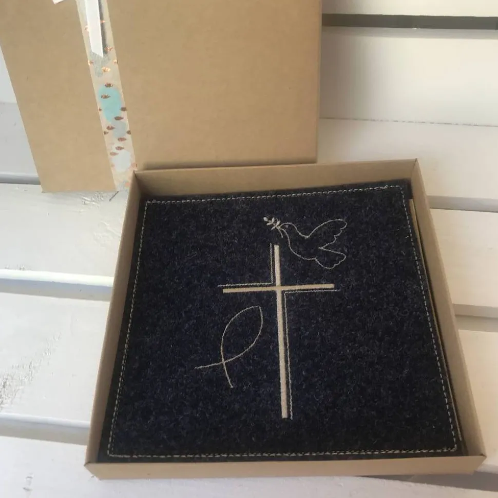 Das Motiv wird direkt auf das Filz aus 100% Wolle gestickt.