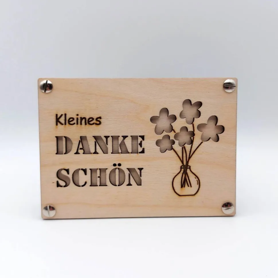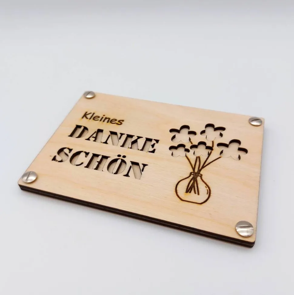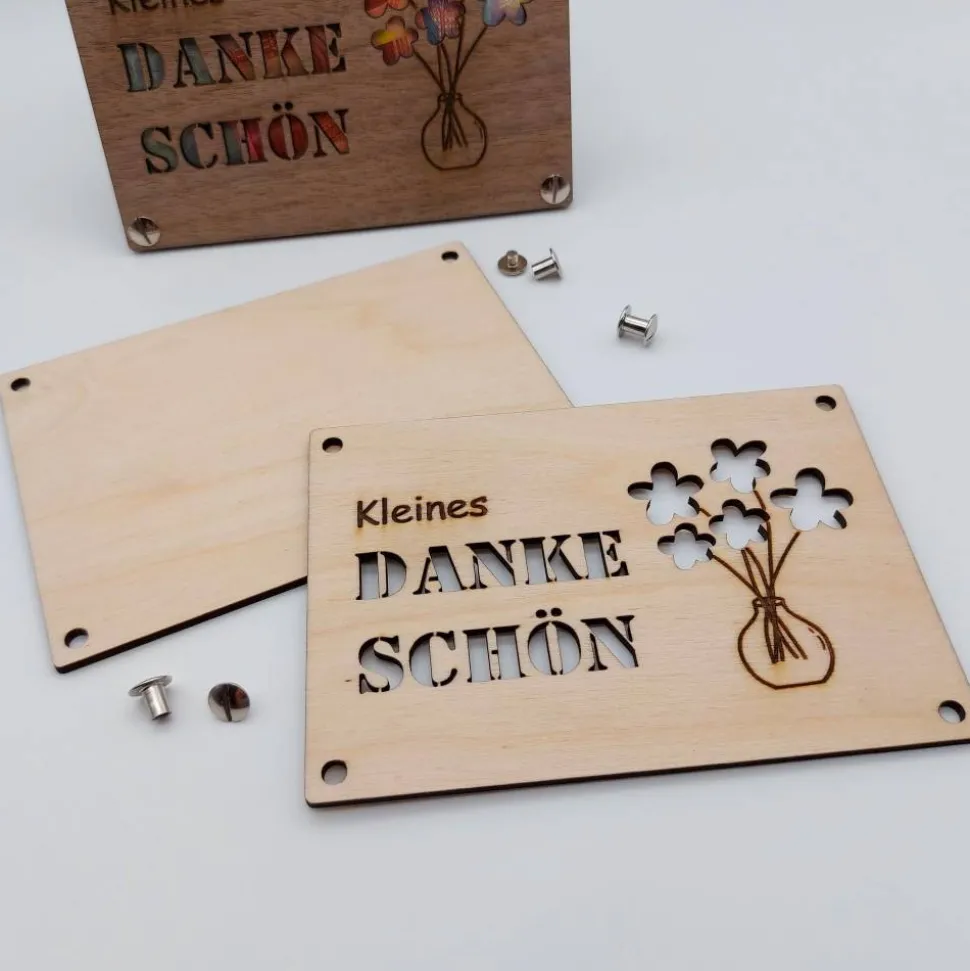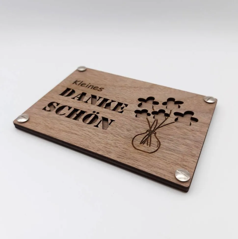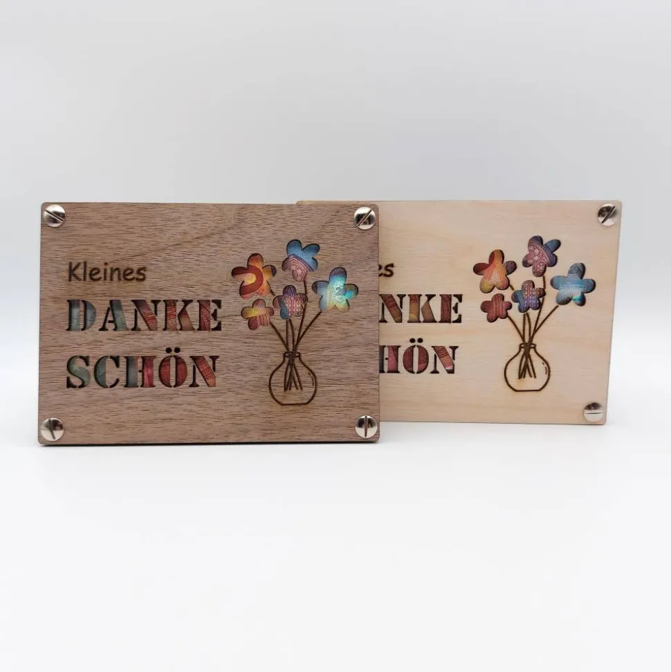Jede „Danke-Karte“ wird mittels einem Laser sorgfältig und mit hoher Präzision hergestellt.