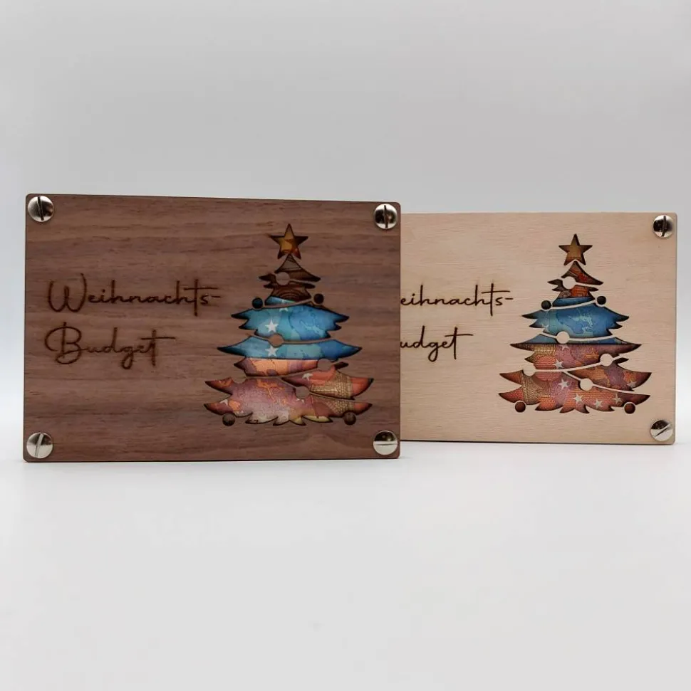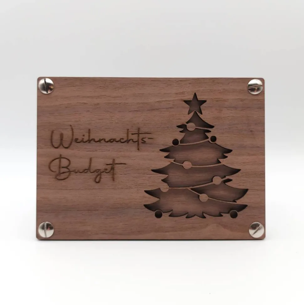 Mit viel Liebe zum Detail gefertigt, ist dieses „Weihnachts-Budget“ die perfekte Wahl, um deine Liebsten zu überraschen und ihnen eine Freude zu bereiten. Schenke auf besondere Weise – mit einer Holz-Geschenkkarte, die Herzen höher schlagen lässt!