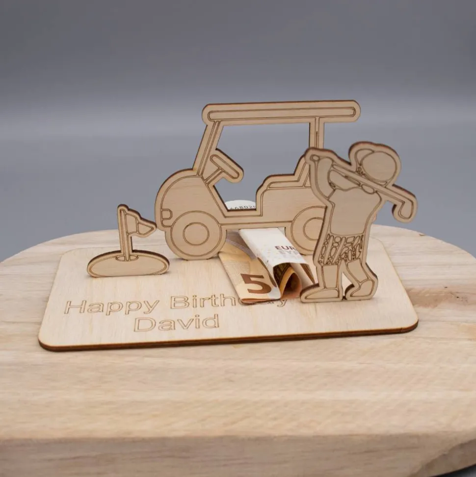 Bestellen Sie jetzt dieses einzigartige Geldgeschenk und überraschen Sie den Golf-Liebhaber in Ihrem Leben mit einem Geschenk, das sowohl in seiner Form als auch in seiner Bedeutung Bestand hat.