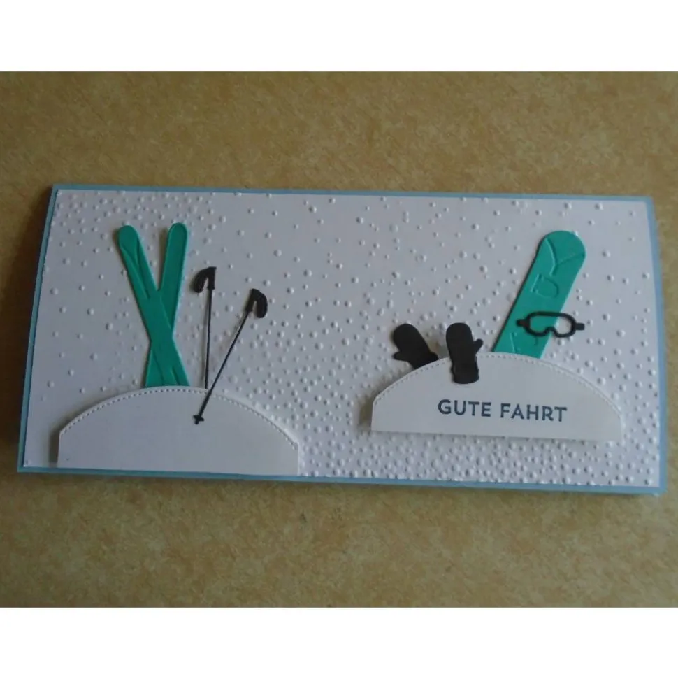 versendet wird diese Geldgeschenk Gutschein mit Ski Snowboard für einen Mann Frau Junge oder Mädchen.. mit passendem Umschlag und in einer Schutzhülle…