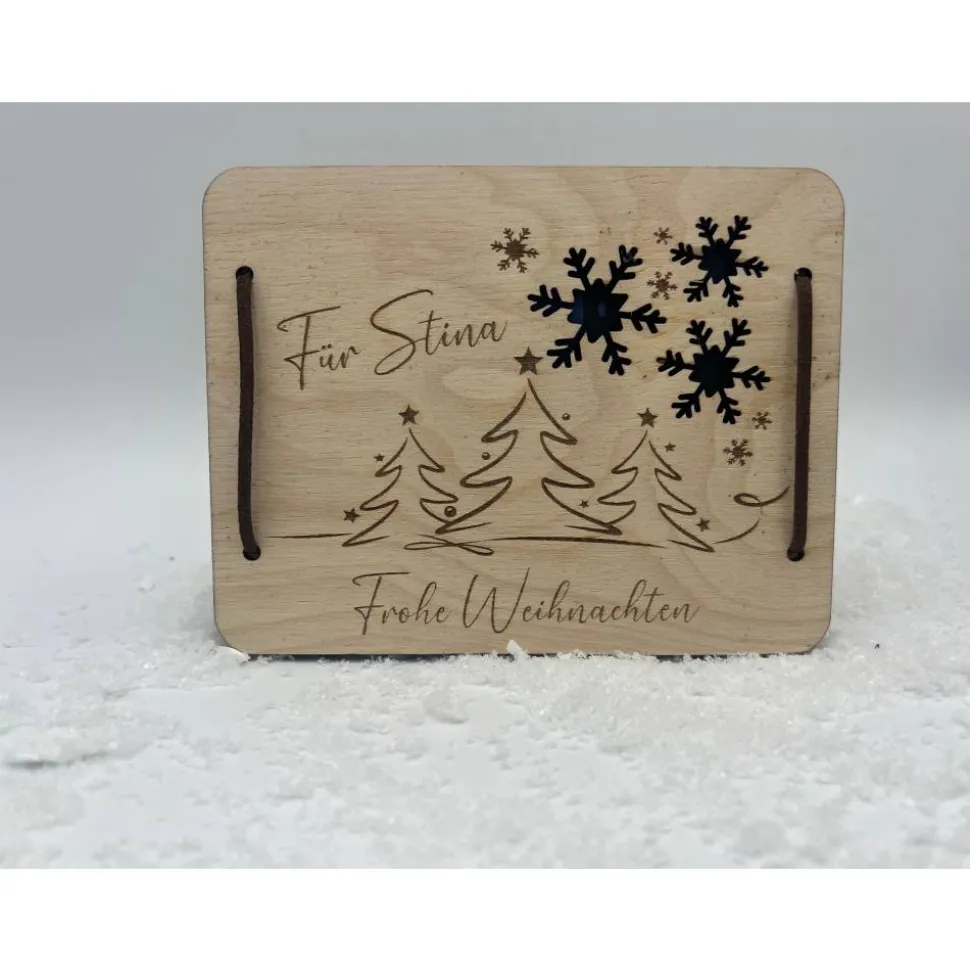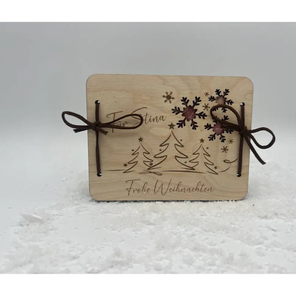 Weg mit der langweiligen Weihnachtskarte – schenke Geld in einer Holzkarte .