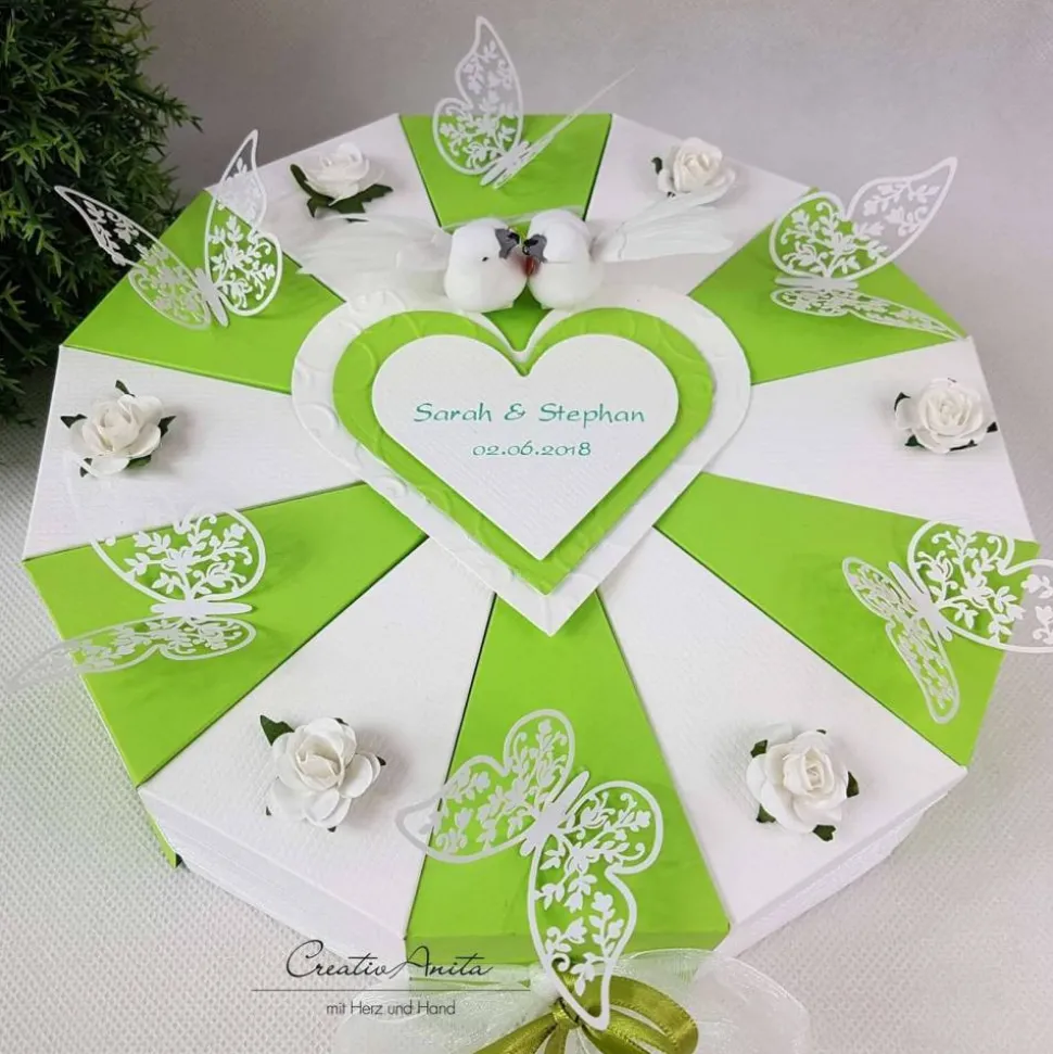 12 einzelne Tortenstücke, jedes einzeln nach Belieben befüllbar (z. B. mit Geld, Gutschein, Mini-Schafmilchseifen, Sprüchen, Süssigkeiten usw.)