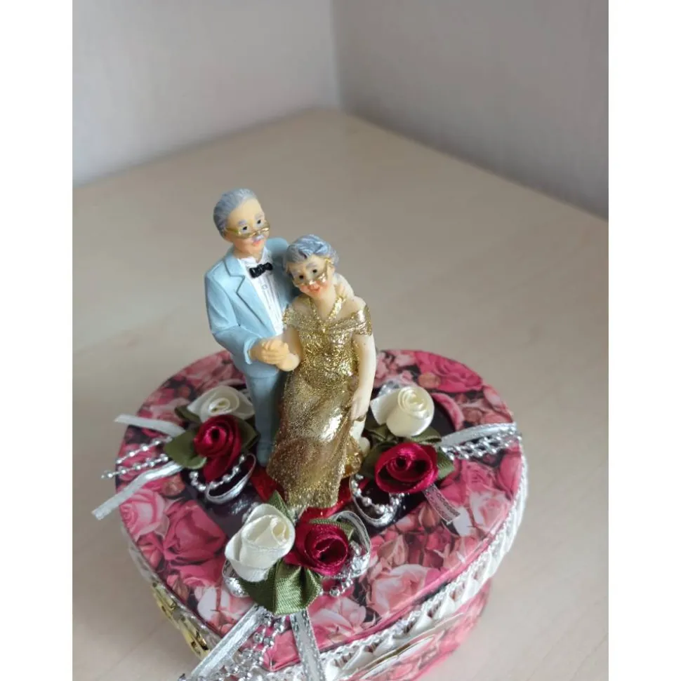 Du suchst nach einer besonderen Art, Geld zur Hochzeit oder zum 60. Hochzeitstag zu verschenken? Mit dieser liebevoll gestalteten Herzbox triffst du garantiert ins Schwarze! Anstatt Geld im Umschlag zu überreichen, setzt du mit dieser Szene ein echtes Highlight. Die Herzbox misst 11x 8,5 x 6 cm und ist mit zahlreichen Dekoelementen ausgestattet, die das Geschenk zu einem echten Blickfang machen.
