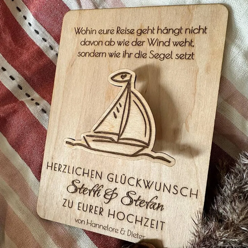 Mit dem hervorgehoben Motiv eines Segelbootes ist die Karte ein absoluter Hingucker und durch die Namen ein ganz besonderes persönliches Geschenk.