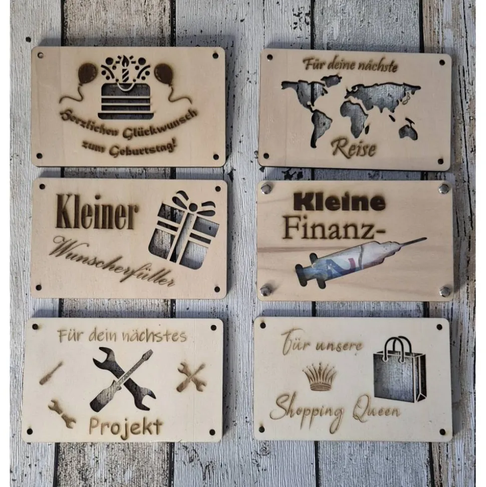Entdecke die einzigartige Geldkarte aus robustem 4mm Pappelholz – das perfekte Geldgeschenk für jeden Anlass!