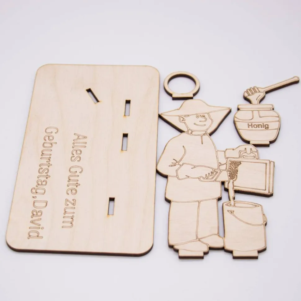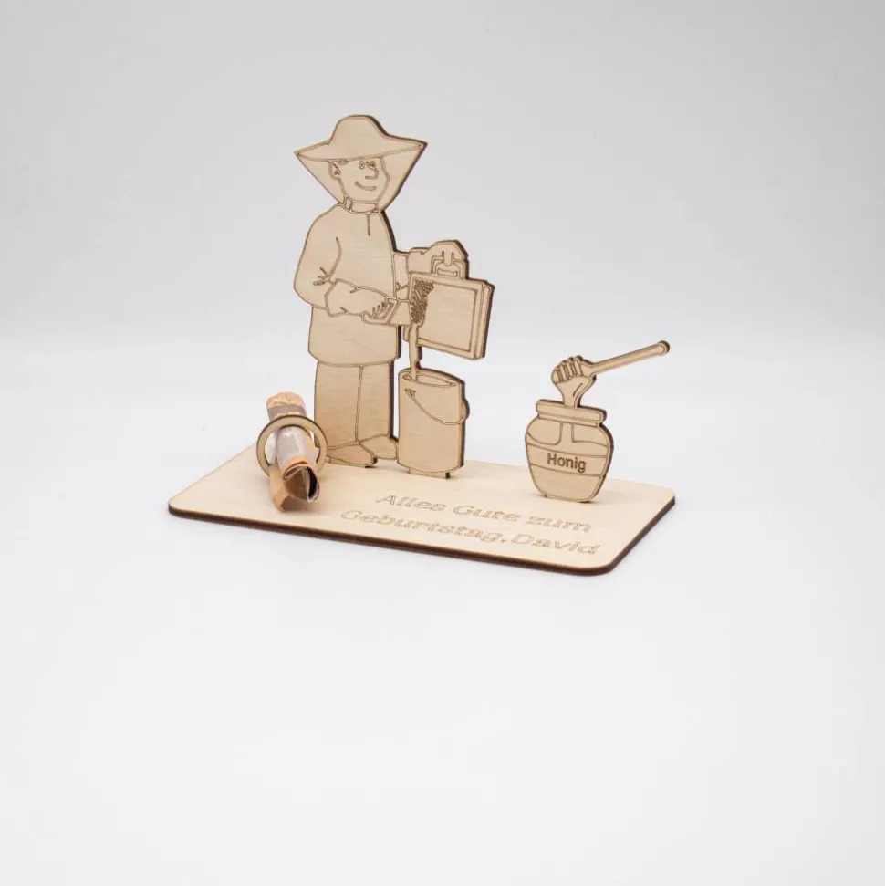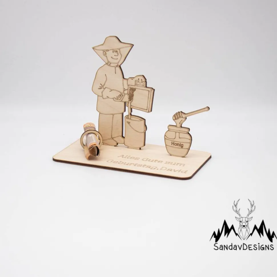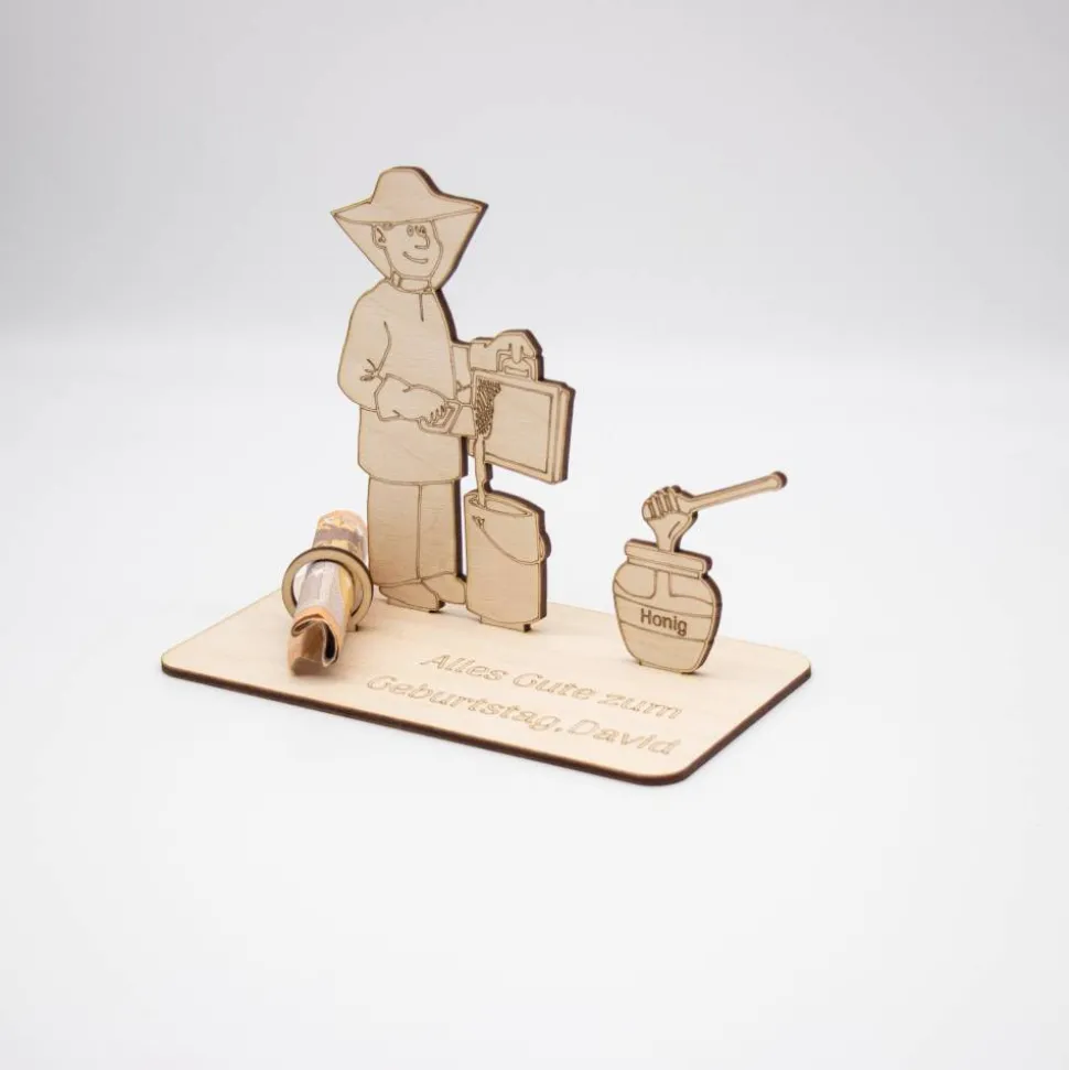 „Der süße Honigtopf“ ist nicht nur ein Geldgeschenk, sondern auch ein Kunstwerk, das mit Liebe und Präzision hergestellt wird. Jedes Stück wird mit einem Laser aus Birkensperrholz ausgeschnitten. Das Design symbolisiert die unermüdliche Arbeit und Hingabe der Imker, die süßen Nektar in goldenen Honig verwandeln.