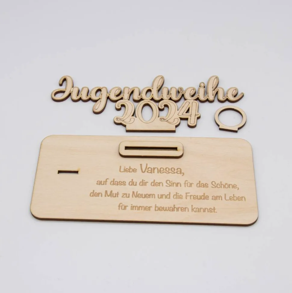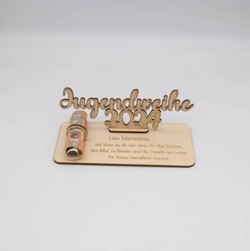 Personalisierung: Der Clou dieses Geldgeschenks ist die individuelle Gestaltung. Ob Namen, Datum der Jugendweihe oder eine persönliche Botschaft – jedes Detail wird nach Ihren Wünschen eingraviert, um ein wirklich einzigartiges und persönliches Geschenk zu kreieren.