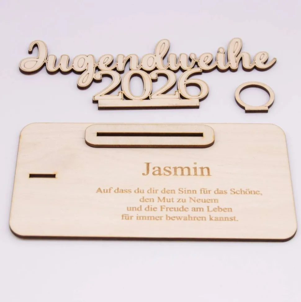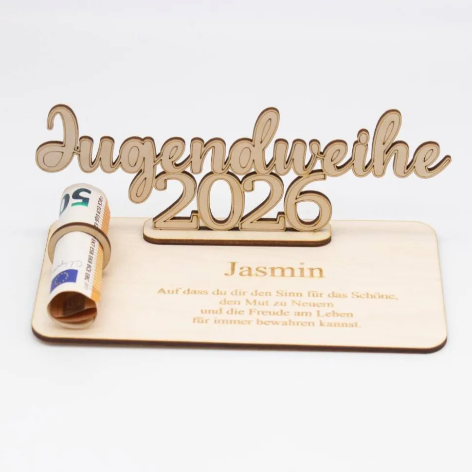 Geldgeschenk Jugendweihe 2026 – personalisiert aus Holz – modernes Jugendweihe Geschenk mit Name
