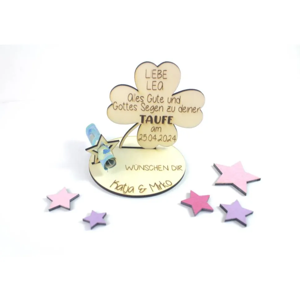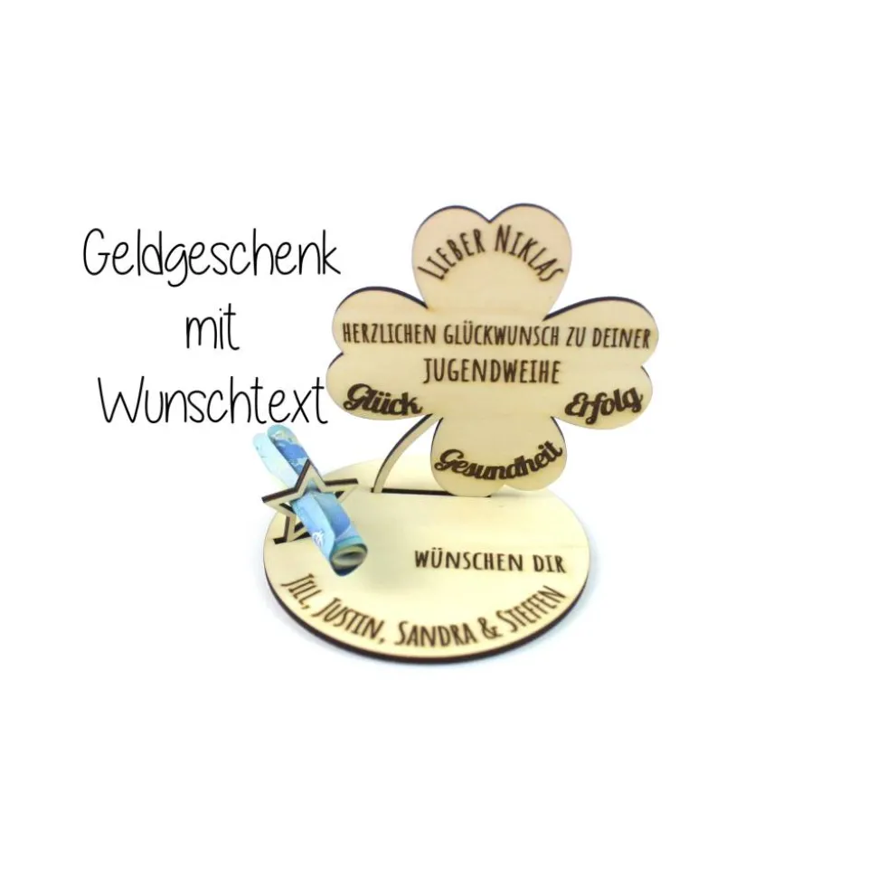 Wir fertigen dir mit deinem Wunschnamen ein individuelles und wunderschönes Geldgeschenk an. Ein absoluter „Hingucker“ am jeweiligen Feiertag und auch in den Jahren danach als Dekoration eine schöne Erinnerung an einen besonderen Tag.
