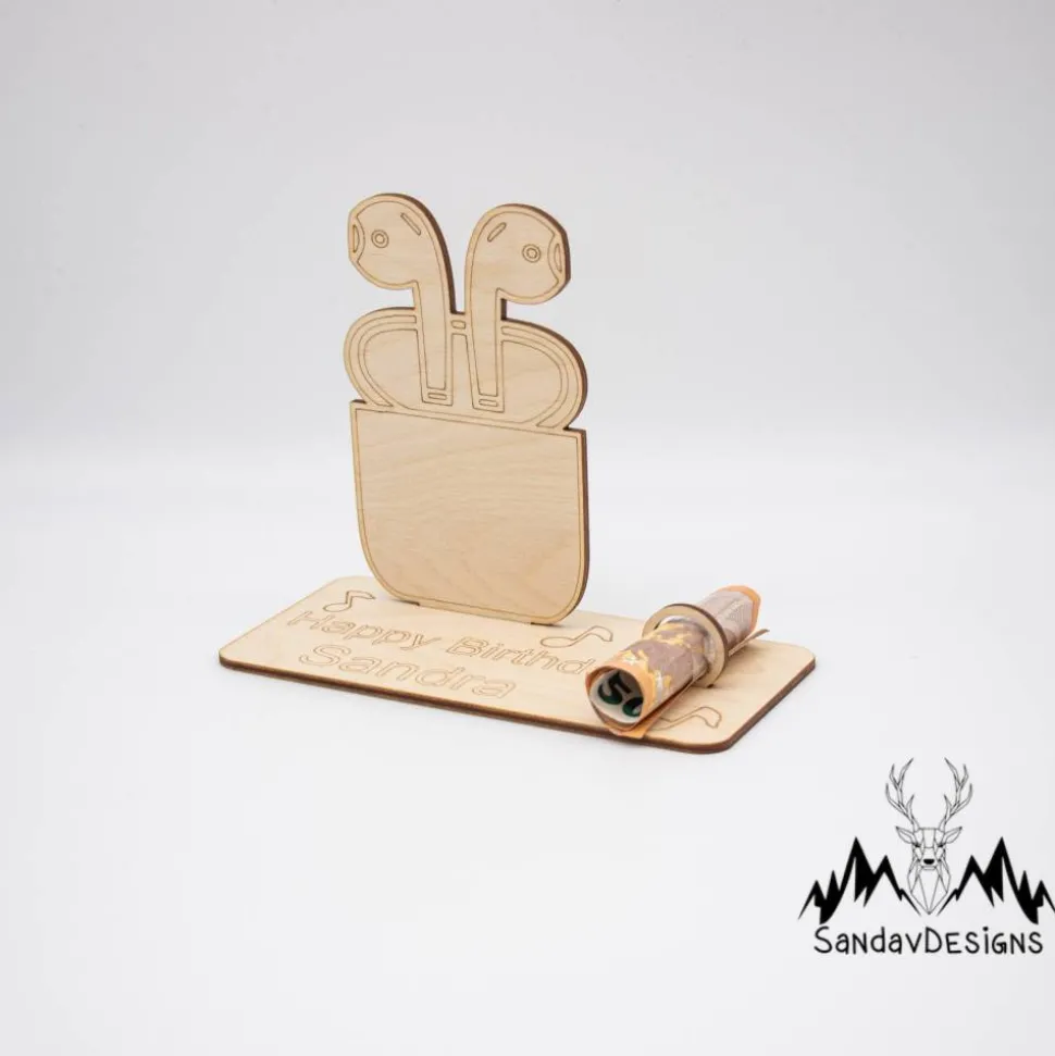 Unser Geldgeschenk aus 3 mm Birkensperrholz bietet nicht nur eine stilvolle Präsentation für Geldscheine, sondern kann auch als dekoratives Element in jedem Zuhause dienen. Es kann an der Wand aufgehängt oder auf einem Regal platziert werden, um eine wunderbare Erinnerung an den besonderen Anlass zu schaffen.