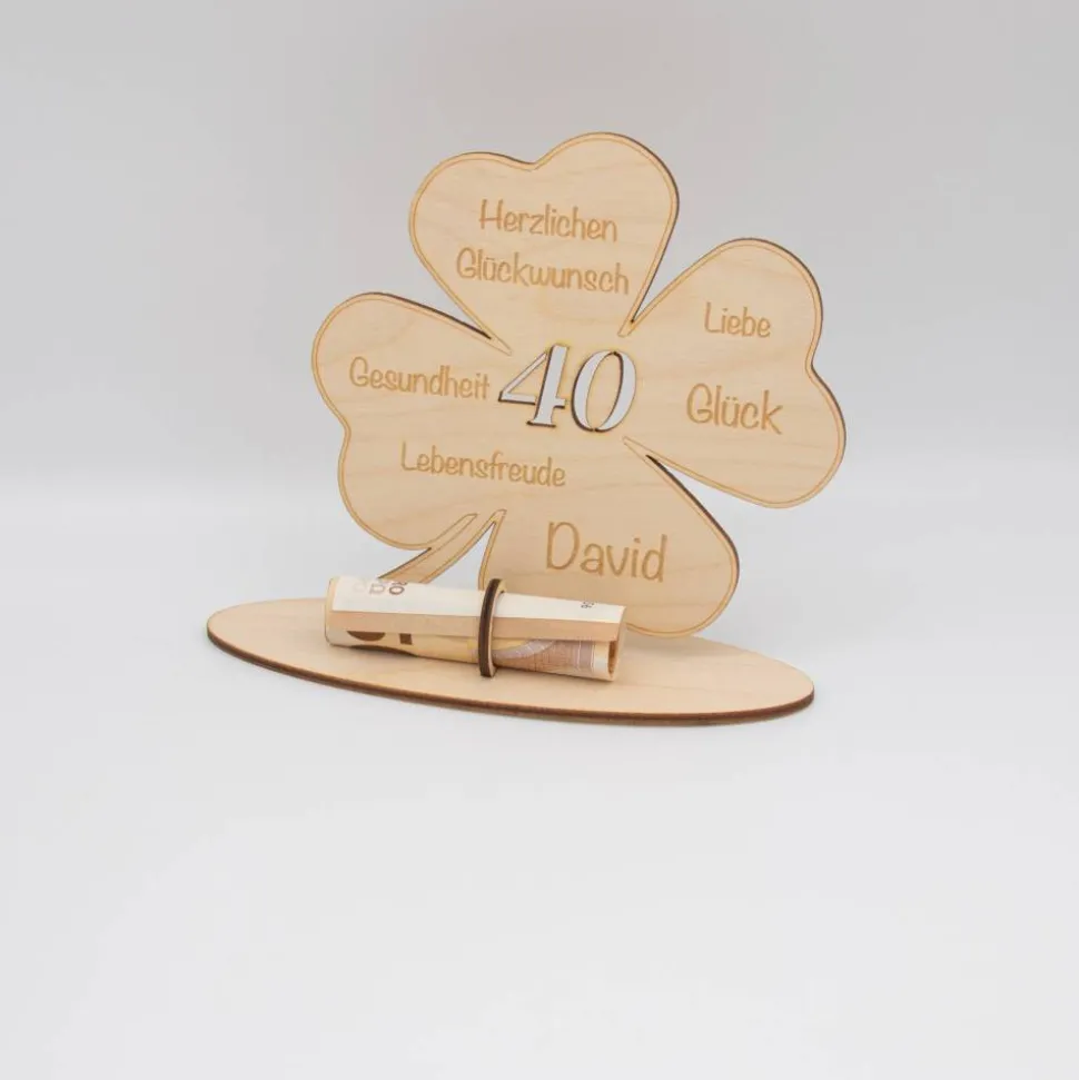 Geldgeschenk Kleeblatt - aus Holz personalisiert
