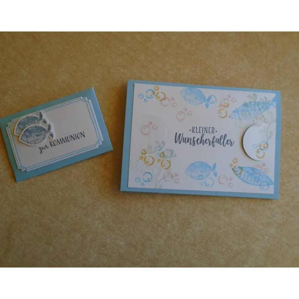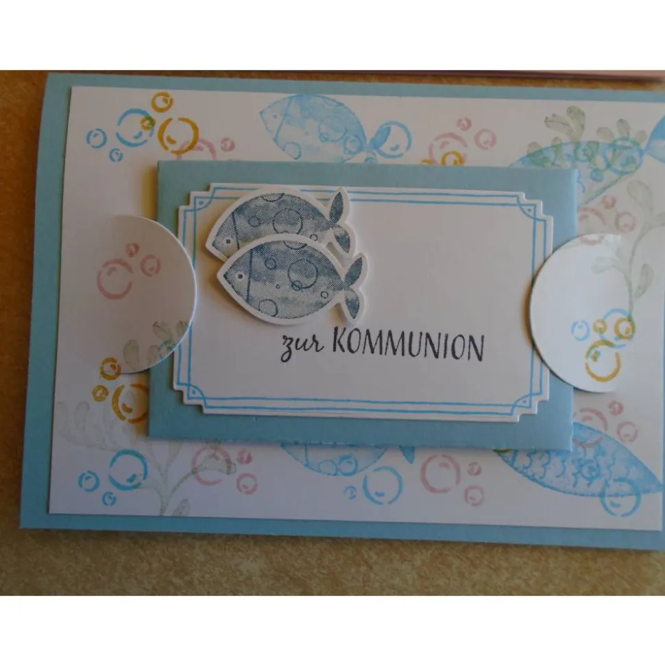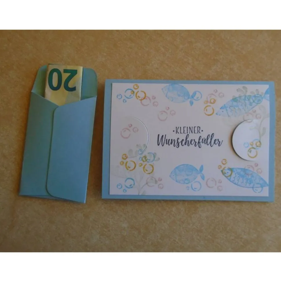 Verziert wurde diese Geldkarte Geldgeschenk zur Kommunion für ein Jungen oder ein Mädchen mit Fische..