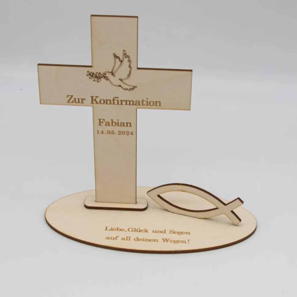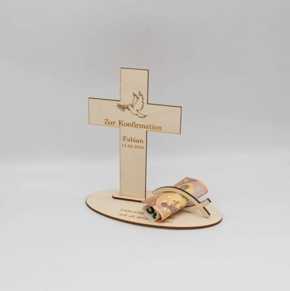 Geldgeschenk Konfirmation – Kreuz – aus Holz personalisiert