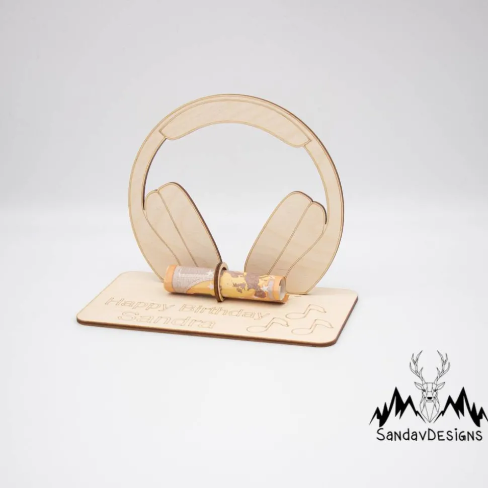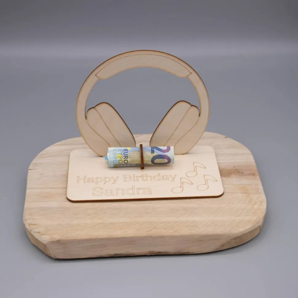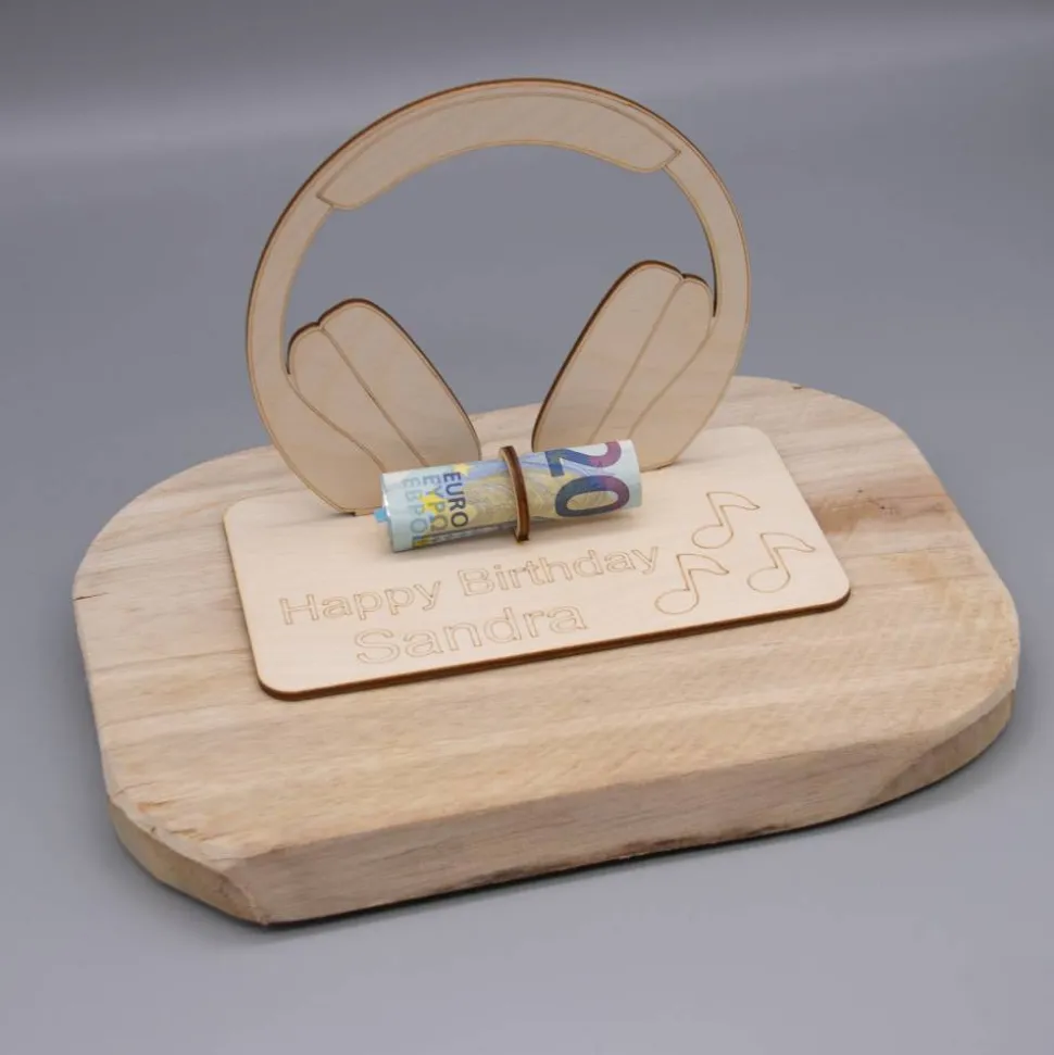Geldgeschenk Kopfhörer - aus Holz personalisiert