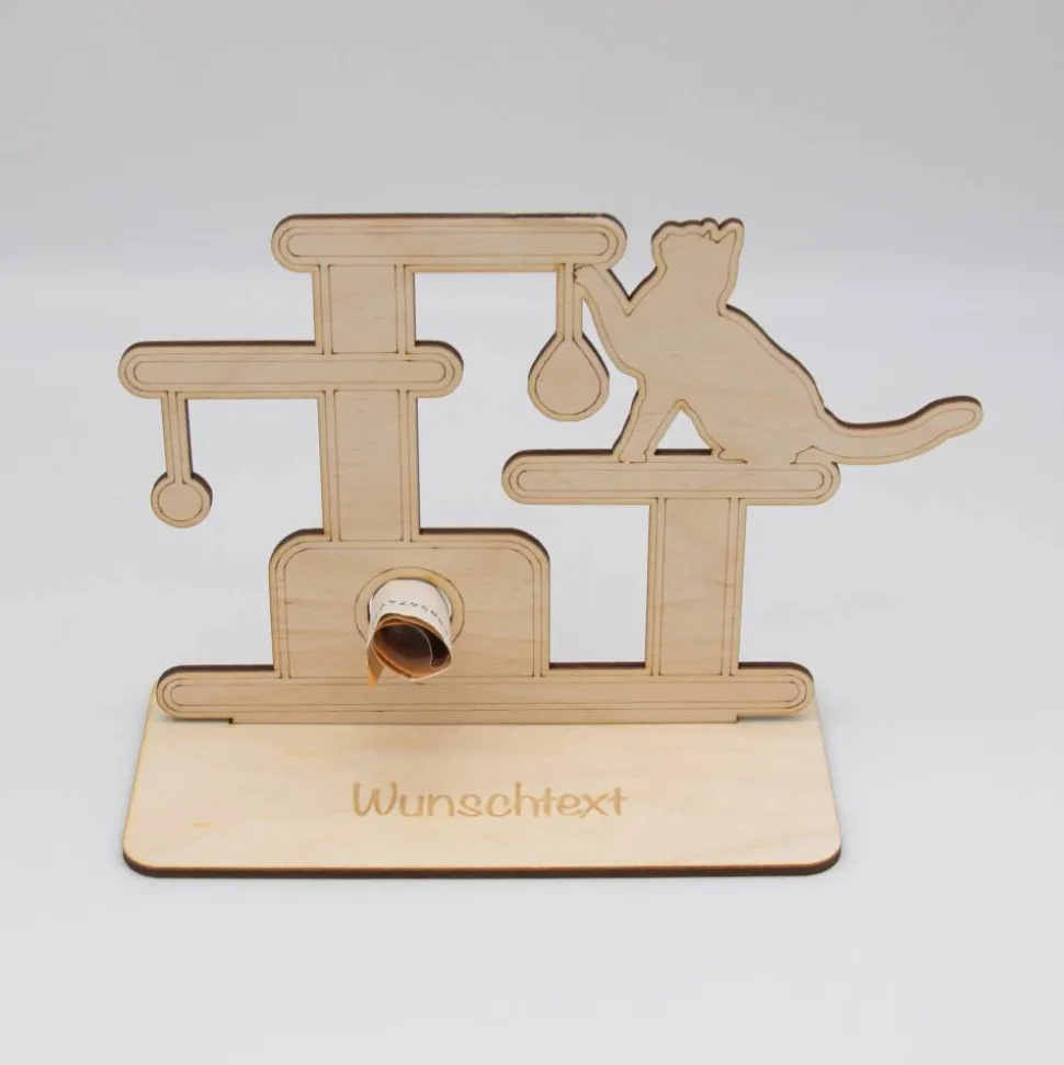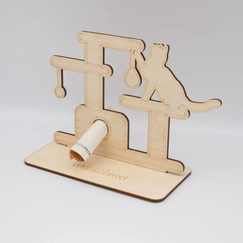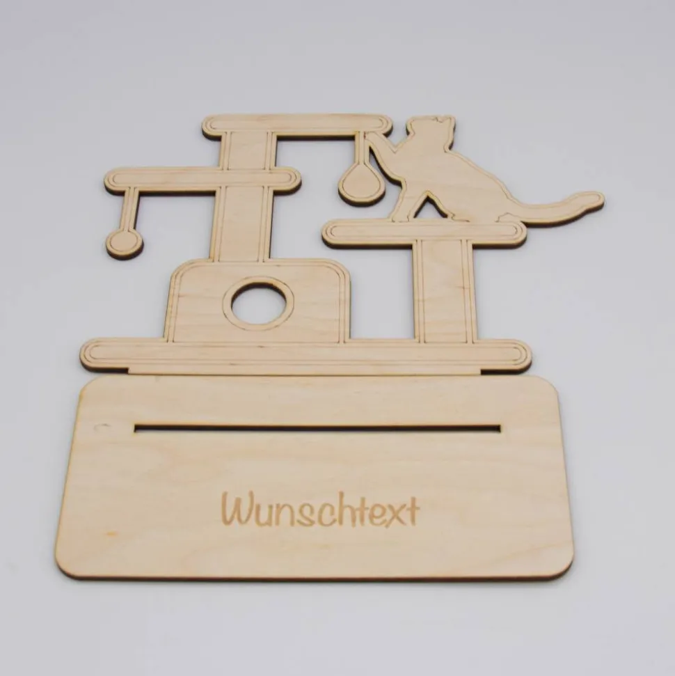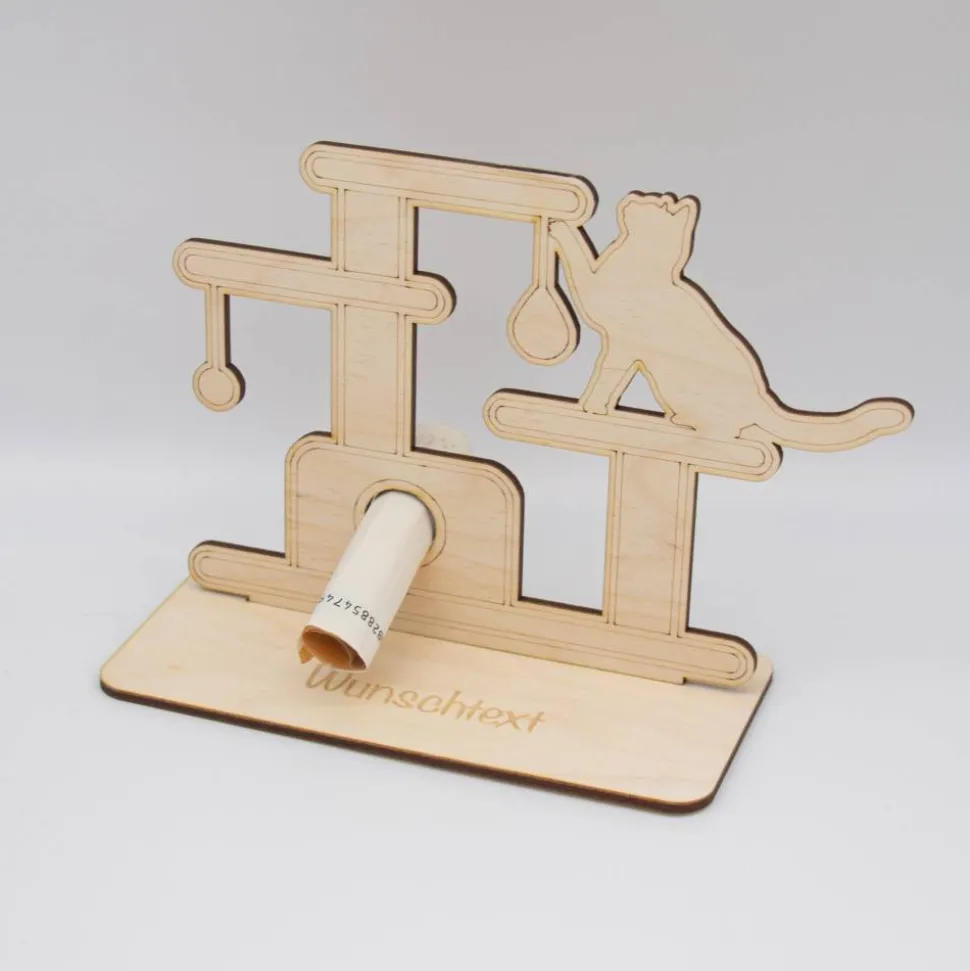 Geldgeschenk Kratzbaum/Katze – aus Holz personalisiert