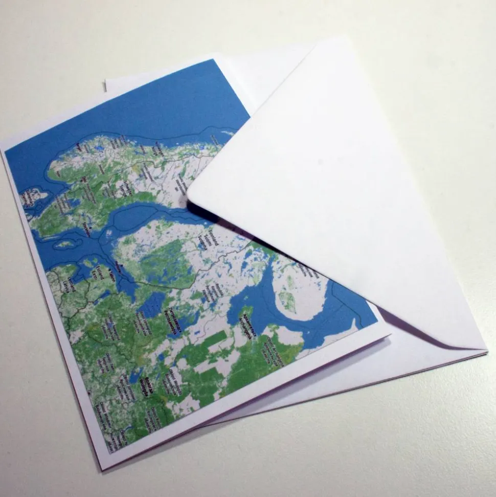 Auf der extra dazugehörigen Klappkarte mit Landkartenausschnitt hast Du noch Platz für ein paar persönliche Zeilen oder Du nutzt diese einfach als Gutschein.