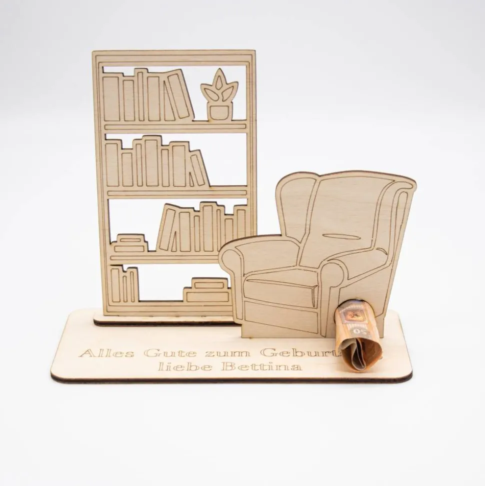 Dieses handgefertigte Holz-Geldgeschenk ist nicht nur eine originelle Art, finanzielle Präsente zu überreichen, sondern auch eine bleibende Erinnerung an einen besonderen Anlass. Ob Geburtstag, Jubiläum oder eine andere besondere Feier – das perfekte Geschenk für jeden Bücherwurm.