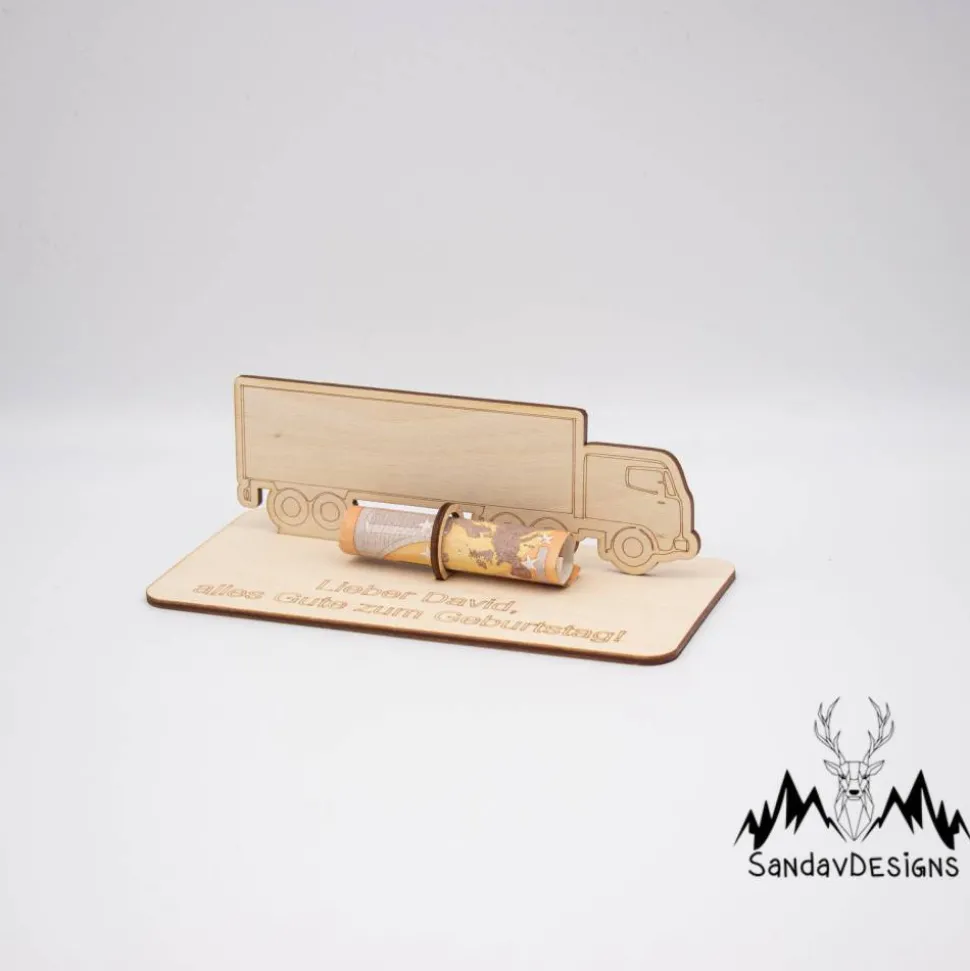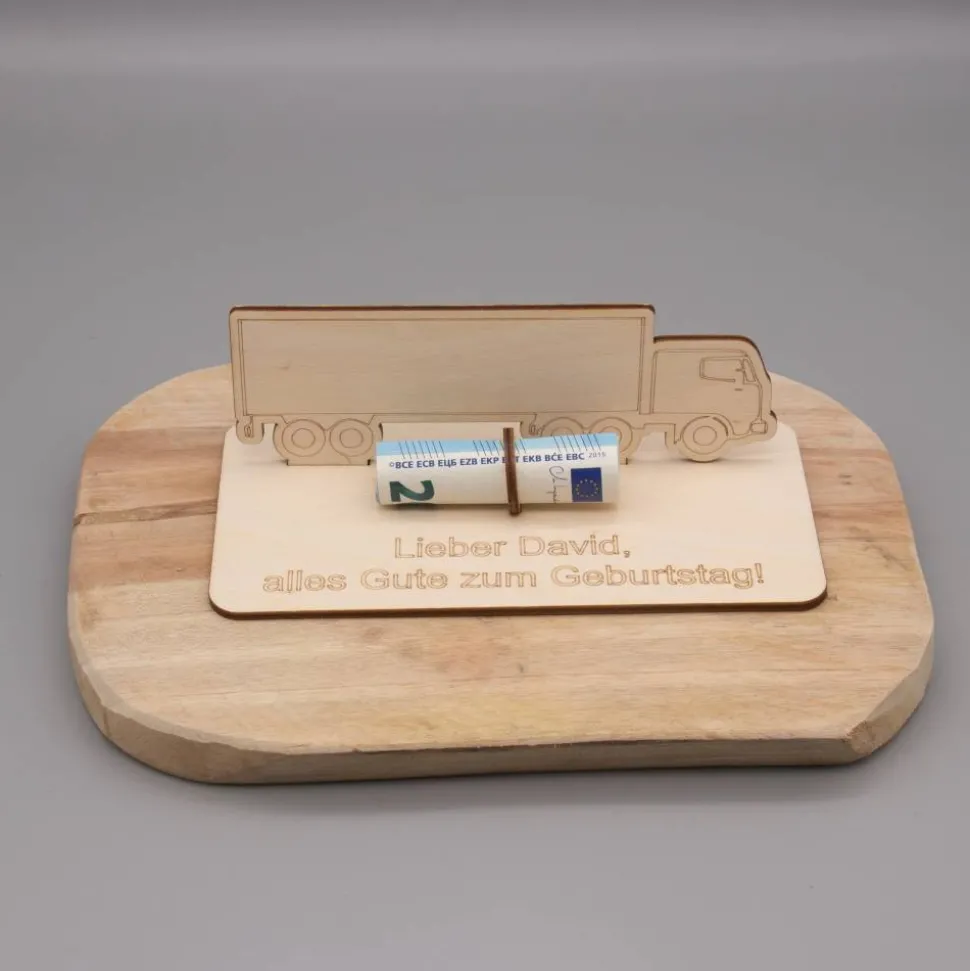 Geldgeschenk LKW - aus Holz personalisiert