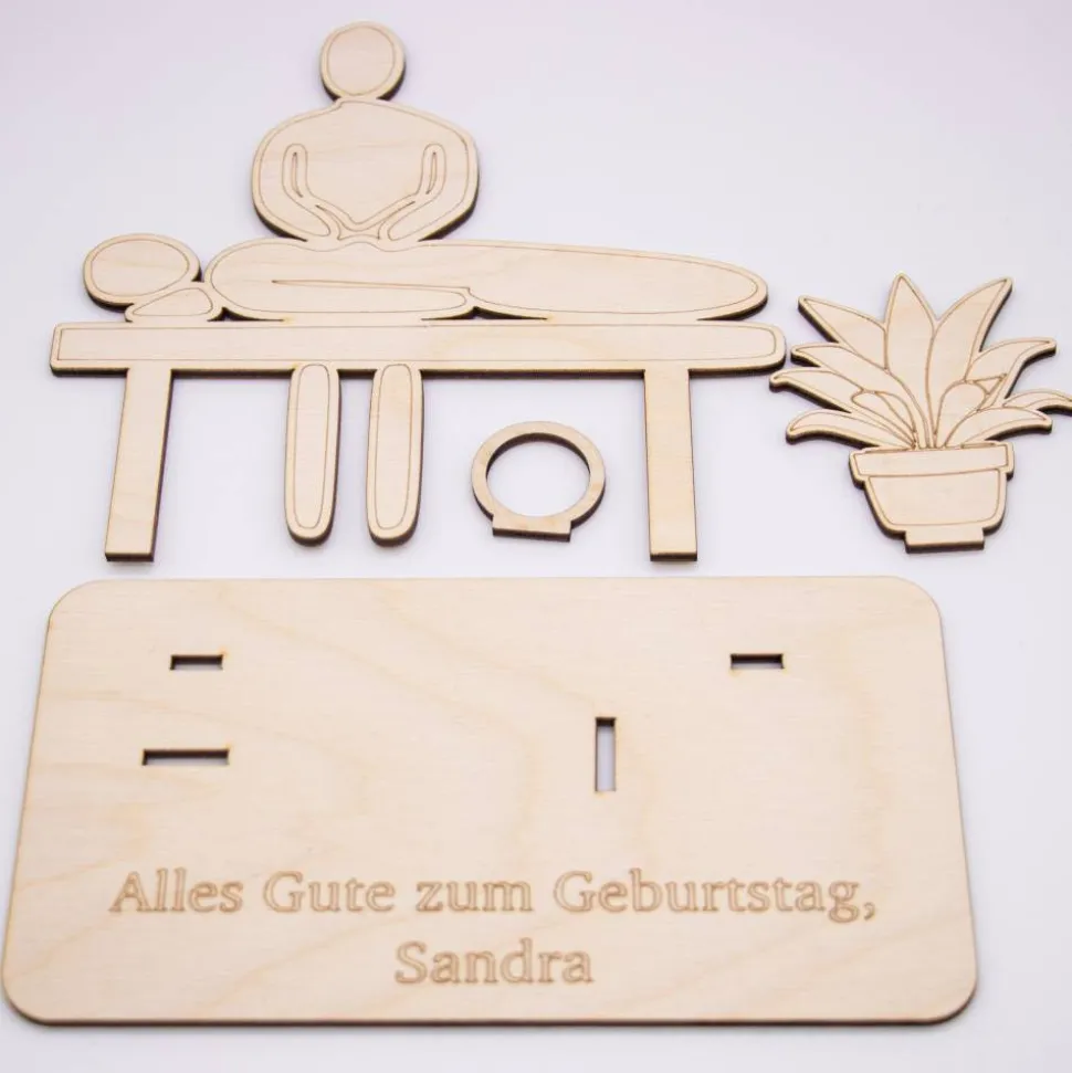 Geldgeschenk Massage – Wellness – aus Holz personalisiert
